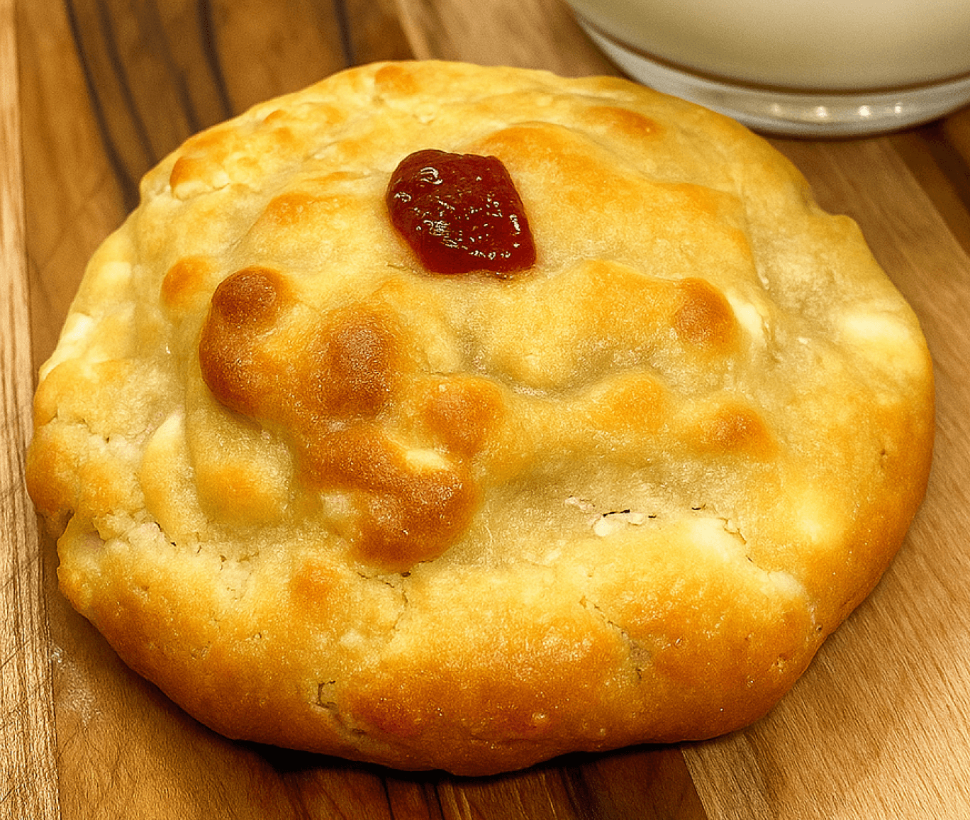 Cookie de 75g com massa tradicional e parmesão recheado com goiabada cremosa